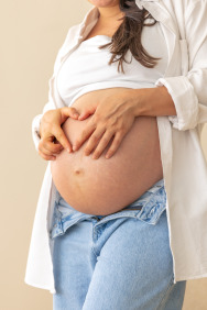 En el quirófano durante el nacimiento.